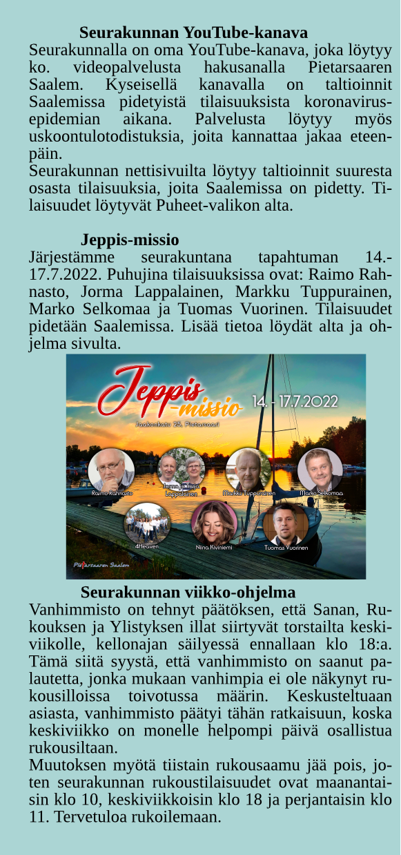 • Hyvän sanoman iltapäivä 28.9.2025